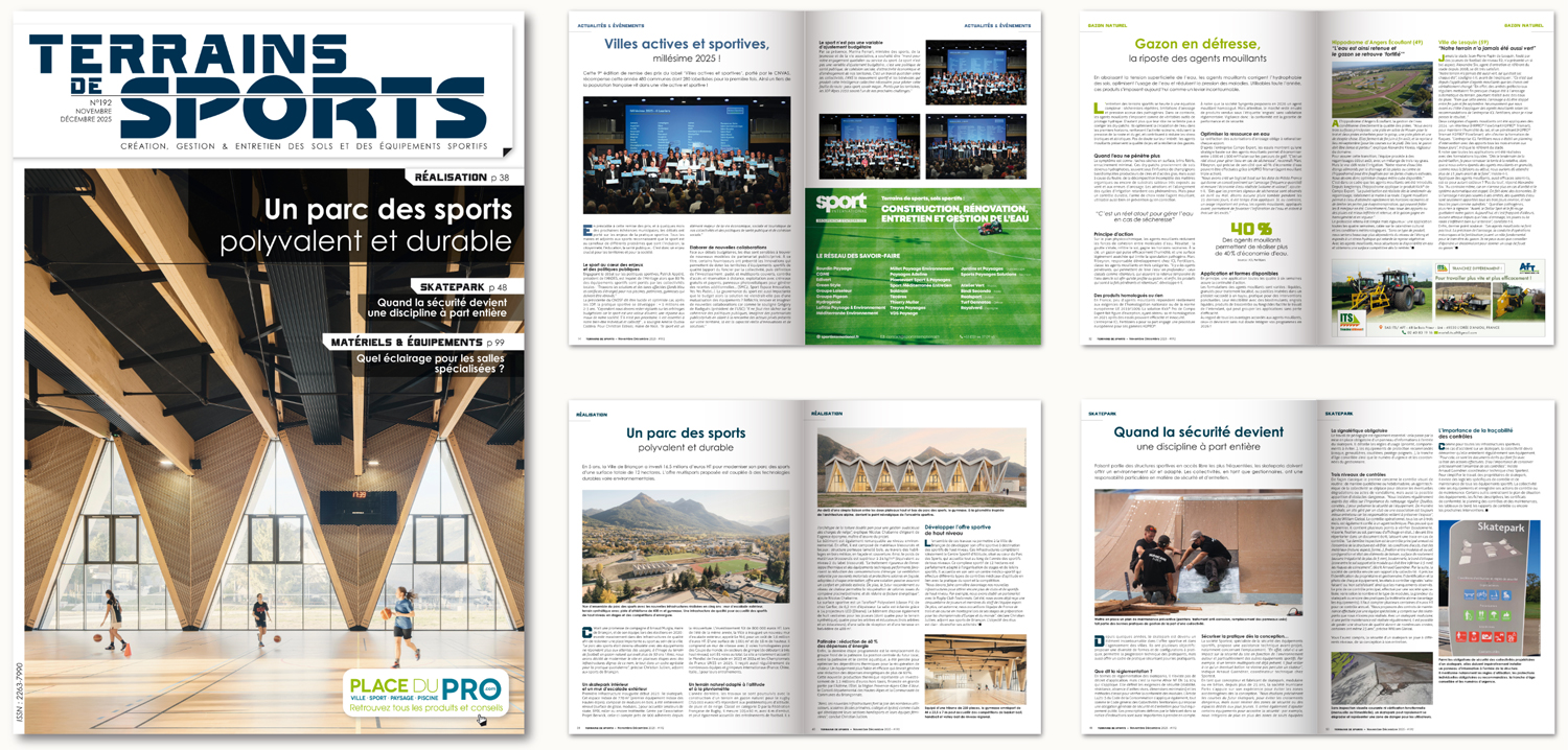 Le magazine Terrains de Sports accompagne les responsables et gestionnaires des équipements sportifs pour la création, la gestion et l'entretien des sols et des équipements sportifs. Il propose des analyses, des dossiers d’actualité, des conseils pratiques et des partages d’expérience.
